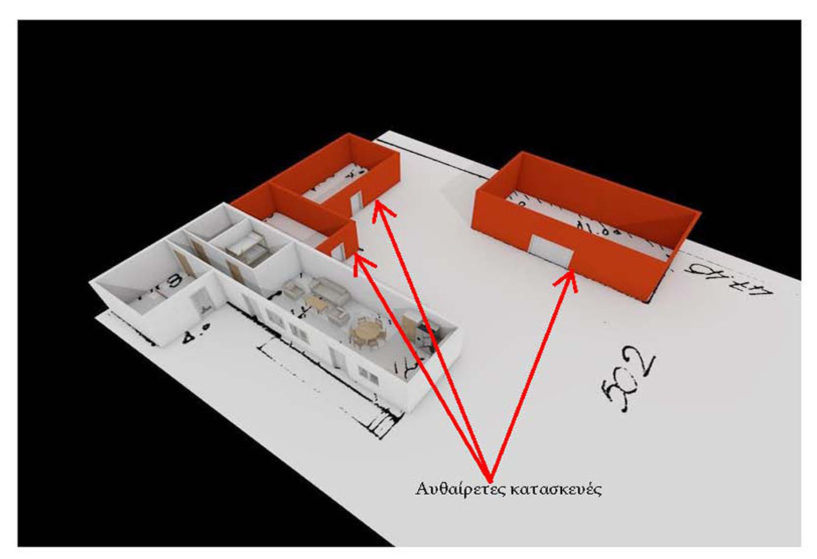 - αυθαίρετα υπόγεια - εσωτερικούς εξώστες (πατάρια) - σοφίτες